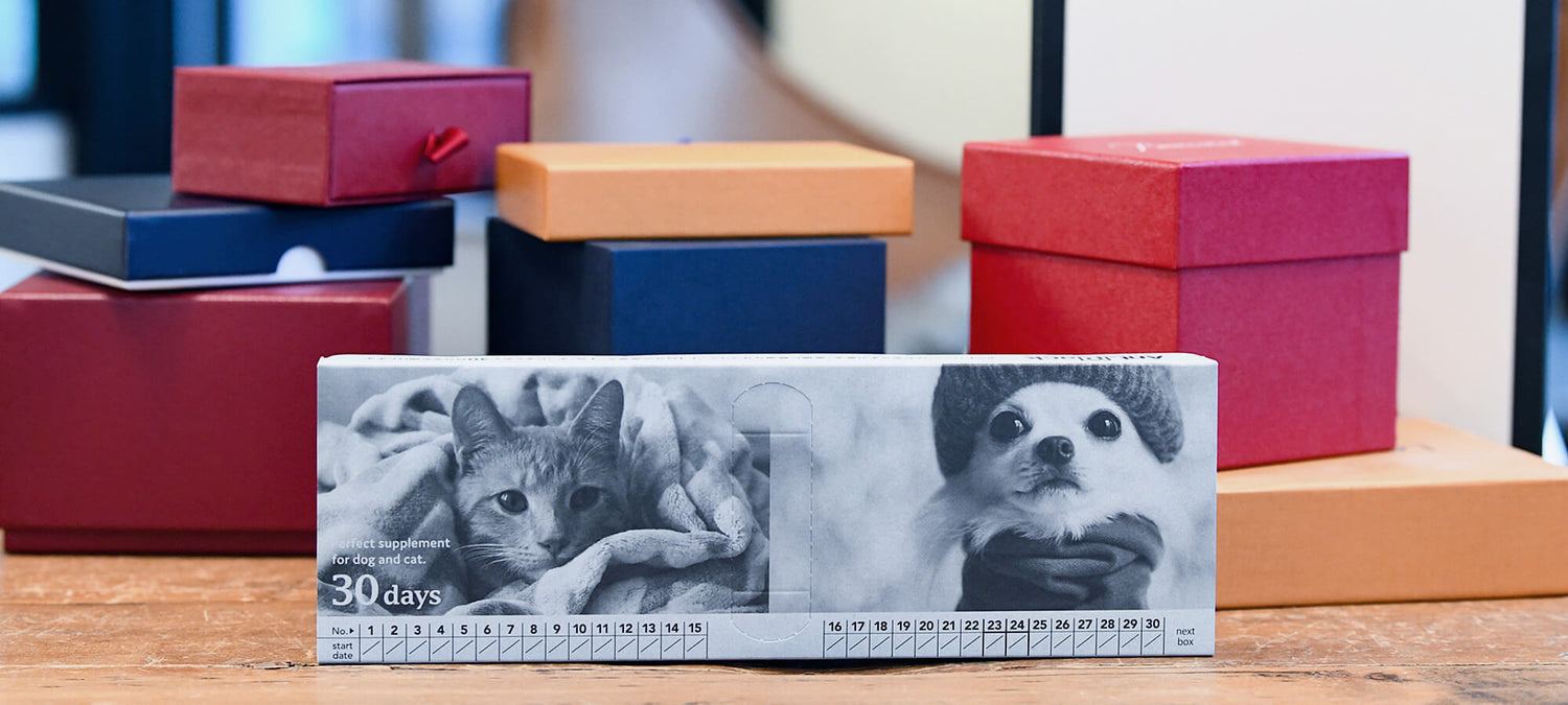 ペット用サプリメント専門店として、大切な愛犬・愛猫の健康と飼い主様のためにお手伝いできることはないか、 使いやすく続けやすい方法はないかと考えた末に、人用調剤薬局のようにサプリメントをその子の体重にあわせて分包するという答えにたどり着きました。