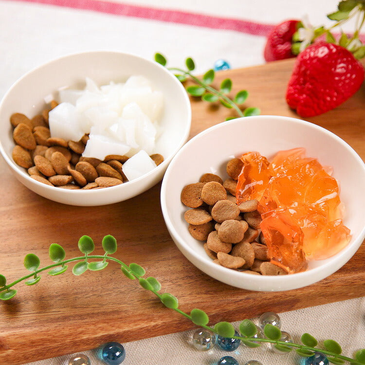 肉食動物の食性を持つ愛犬愛猫が多く必要とする栄養素、タンパク質であるゼラチンを上質なフレーバーが香る原材料で味付けしました。